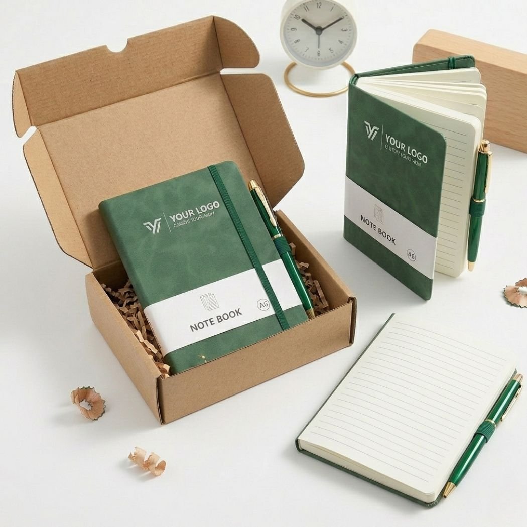 Perpaduan notebook compact dengan metal pen memberikan feel yang lebih premium dibanding office kit biasa, cocok untuk kebutuhan internal maupun distribusi ke klien.